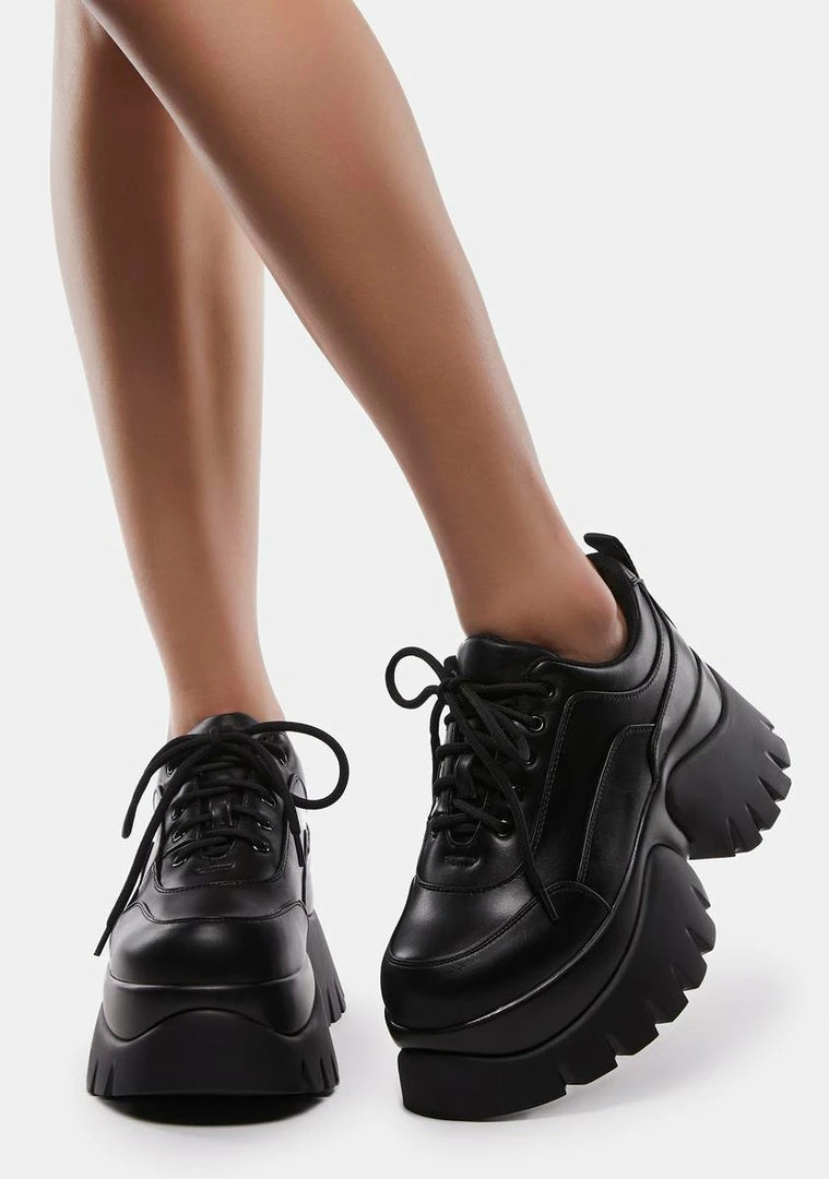 what’s not to love? These platform sneakers have a vegan leather construction, chunky platforms, and adjustable lace-up ties.