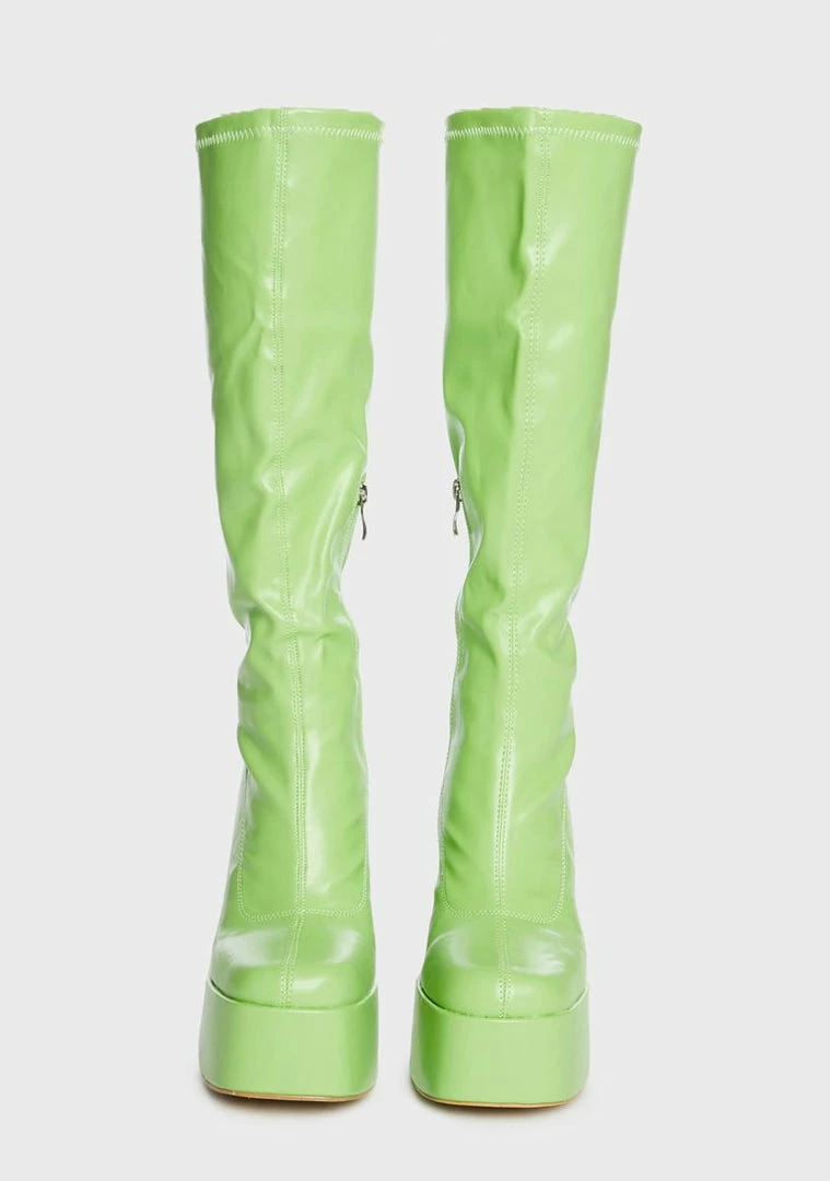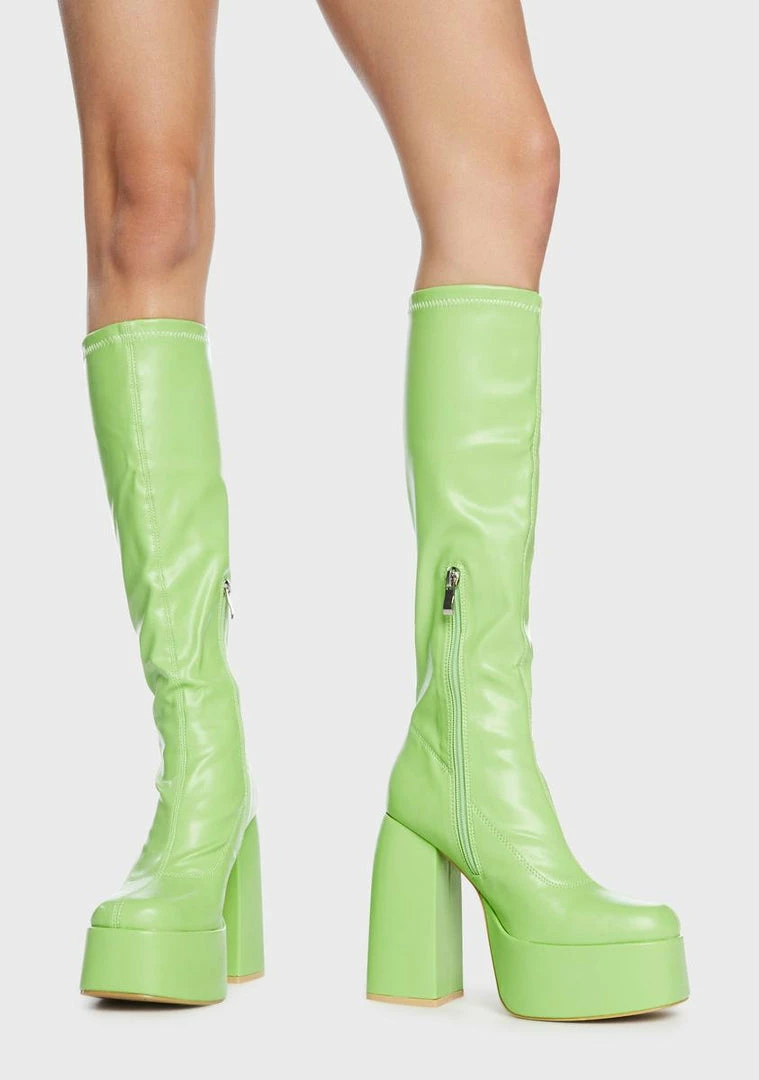 Best Pirce ???? Koi Footwear Green Restless Riser Platform Long ???? Boots ❤️